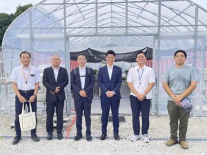 2025.09.29 お知らせ 岸和田市長が当社農業試験場を視察されました 2025年9月20日、岸和田市長・佐野英利様、岸和田市環境農林水産部の関係者が、当社農業試験場を視察されました。 当社農業試験場では、廃液から回収した窒素などを肥料化(再資源化)し、植物を育てる試験などを行っております。 資源循環・脱炭素への貢献を目指し、リサイクル技術の開発にチャレンジしています。