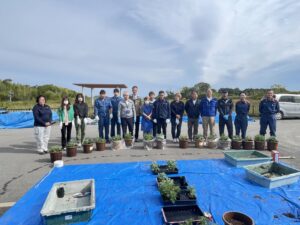 2025年10月21日、ゆめみヶ丘岸和田まちづくり協議会・企業部会主催「クリーンキャンペーン見える化プロジェクト【植栽プランター作製活動】」に参加しました。当社は農業試験場で栽培した植物を提供し、地域の皆さまに植栽や管理方法に関するアドバイスも行いました。